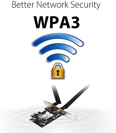 Slot in ASUS PCE-AX1800 to Instantly upgrade your system to the latest WiFi 6 and Bluetooth 5.2 technology. Features the latest WPA3 Wi-Fi security standard, providing your PC with an extra layer of protection against external attacks to give you added peace of mind.
