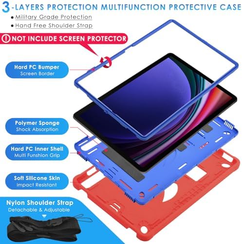 3-LAYERS HYBRID PROTECTIVE KIDS CASE FOR SAMSUNG GALAXY TAB S9 PLUS/ S9 FE PLUS (5G/WIFI) 12.4″ 2023 ANDROID TABLET WITH S PEN HOLDER & SHOULDER STRAP