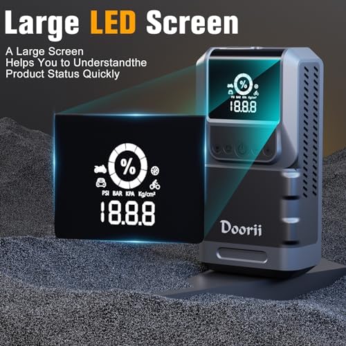 ใ150PSI Powerful Tire InflatorใDoorii Q13 digital air pump supports smart preset & auto shut-off without repeated adjustment and check. With the unique intelligent chip, which is more powerful, more stable and less noisy, the tire inflator provides fast and proper inflation to various tires, balls, etc. Friendly design with real-time data reading, detachable extended air hose and 4 optional unit switching for convenience.