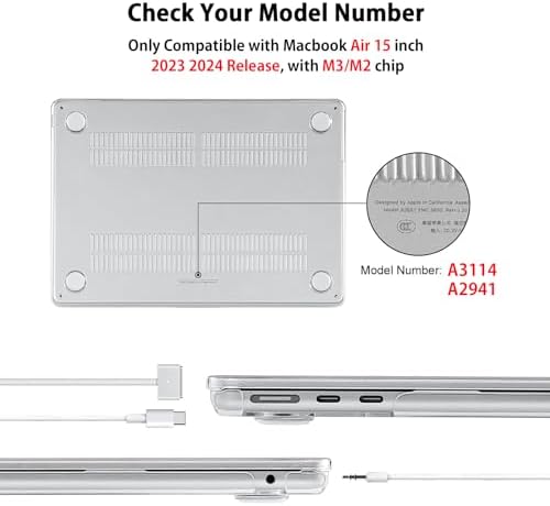 โœ”๏ธOnly compatible with New MacBook Air 15 inch M3 M2 Chip with Liquid Retina Display & Touch ID 2024 2023 Release Model Number: A3114 A2941, Please check the Macbook model “AXXXX” on the back before purchasing to ensure compatibility.