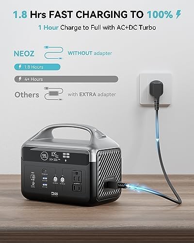 [๐๐ฐ๐ข๐๐ญ ๐๐จ๐ฐ๐๐ซ ๐๐ฑ๐ฉ๐๐ซ๐ข๐๐ง๐๐] No more power concerns! The 110W AC Super Fast Charging Cable fully charges the DaranEner portable power station in just 1.8 hours. With a TYPE-C 60W port, your phone, drone, camera, and small devices are charged in about 30 minutes. The NEOZ small power station, when off, retains its charge for 90-180 days, ready for every trip!