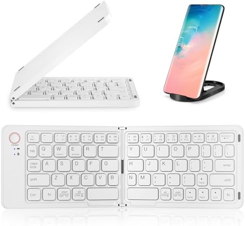 Mini Foldable Bluetooth Keyboard – Portable Wireless Full Size Keyboard (Sync Up to 3 Devices), Ultra-Slim Travel Folding Keyboard for iPhone iPad Mac Android Windows iOS, White