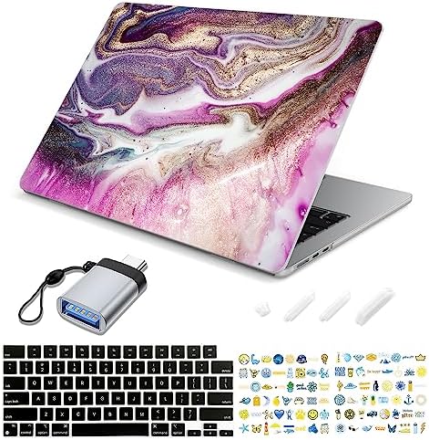 SanMuFly 2023 Release for MacBook Air 15 inch Case M2 Chip 15.3″ Retina Touch ID Model A2941, Protective Plastic Hard Shell & Keyboard Cover & Laptop Stickers & OTG Adapter, Colorful Marble 12
