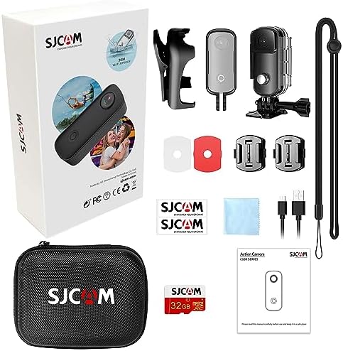 SJCAM C100+ Mini WiFi Action Camera 4K30fps Pocket Wearable Body Camera, Magnetic APP Control, Underwater 98FT Waterproof Helmet Camera with Mount Kits 32G SD Card, Weighs 1oz, 2.4 * 1 * 0.6 inch
