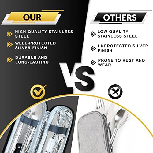 โœ… Detail Oriented: Travel cutlery set with a simple appearance, smooth edges, stainless steel, lightweight yet stylish. Any style of kitchen can be equipped with these travel utensils and cases to meet the basic dining requirements of every consumer. Traveling with it is hassle-free, portable, versatile, and easy to clean