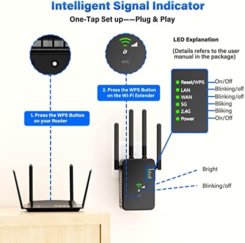 Wi-Fi Signal Security Protocol : You can find the best placement of the Wi-Fi repeater according to the change of the signal indicator.Three lights means strong signal. Two lights means general signal. (Too far away from the main router.) One light means weak signal. (Please move it closer to the router or reset the extender). This internet Wi-Fi extender can maximize the network security, ensure your network safety, avoid the interference and privacy problems of Wi-Fi.